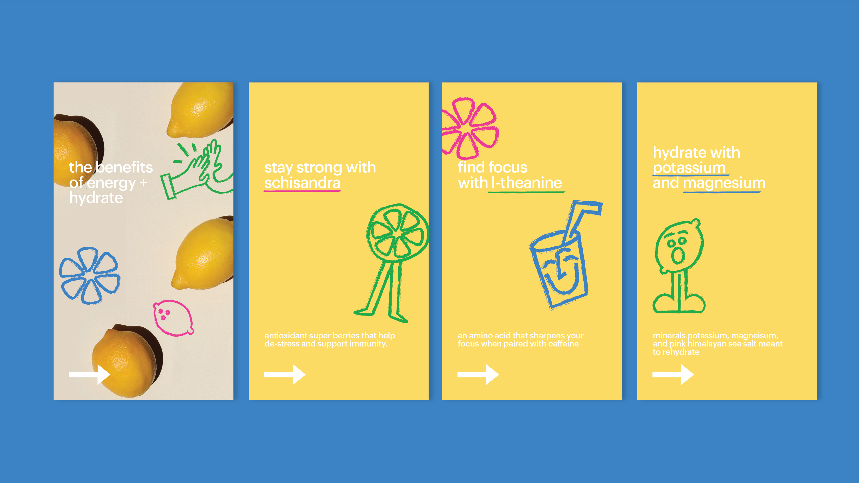Izzy designed the limited-edition Lemon Fizz flavor for the Heywell × Foxtrot collaboration, creating a playful, lighthearted package brought to life through custom illustrations. The design leaned into a silly, joyful energy—using bright color, expressive graphic moments, and illustration to make the product feel fun, approachable, and unmistakably special on shelf.